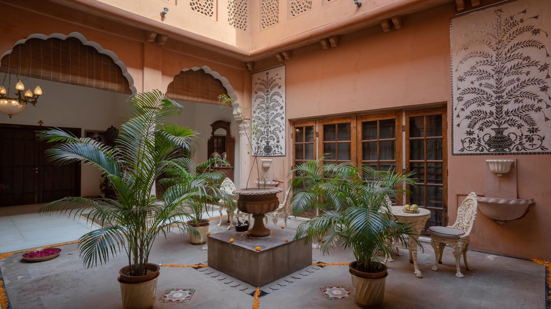 It has six well-designed suites that reflect the regal charm and heritage in their interiors. Kali Ghero paintings, red woven carpets, poster beds with curtains, Jodhpur stonework and terrazzo floorings accentuate these rooms into a royal staycation. You can book each room individually, or if you’re a larger family, you can reserve the entire palace stay in Jaipur.